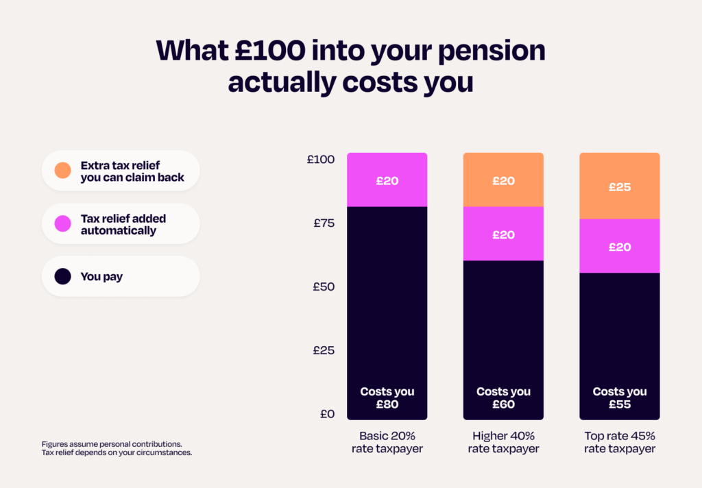 When you make a payment, we collect basic rate (20%) tax relief from HMRC on your behalf, and put it straight into your pension.